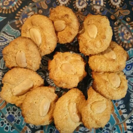 - Se da forma a los almendrados con un vaso o una copa y se colocan en la fuente.