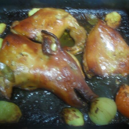 - Se le da la vuelta, se rectifica de sal y, cuando esté al punto, con la piel bien dorada, se saca del horno.