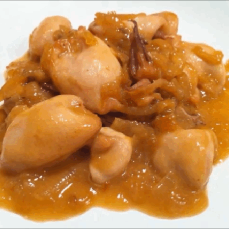 Jibiones Encebollados es un plato tradicional de la costa cantábrica y noroeste de España, especialmente de Galicia y Asturias. Se elabora con jibiones (calamares de gran tamaño o pota) que se cocinan lentamente con una abundante cantidad de cebolla, ajo, vino blanco y pimentón. Es un guiso de origen humilde, típico de los días de Cuaresma y Semana Santa. La cocción lenta es clave para ablandar completamente los jibiones, logrando un contraste delicioso entre lo dulce de la cebolla y el sabor intenso del mar.