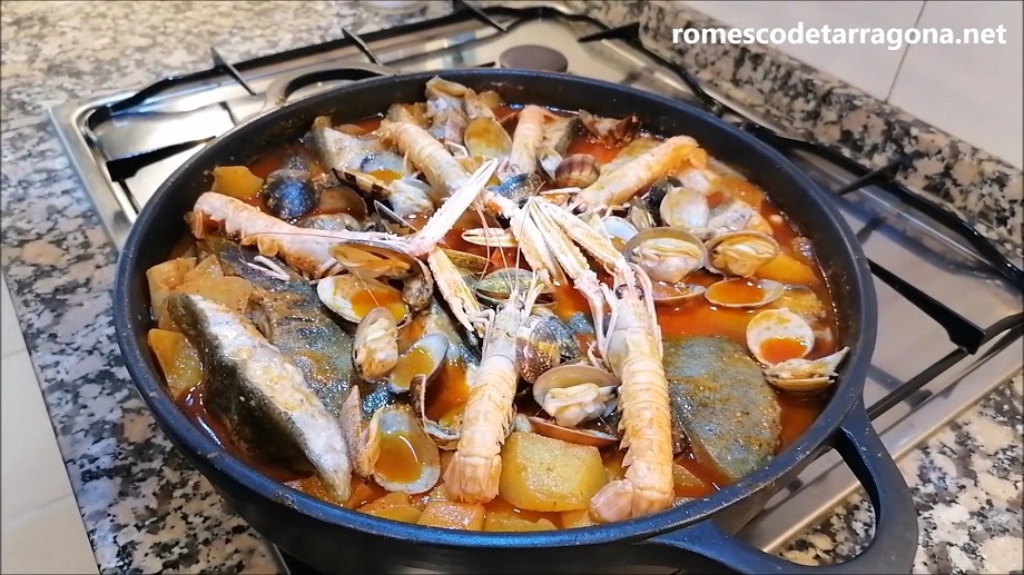 La Romescada de rape y gambas es un plato estrella de la cocina catalana, especialmente de la Costa Dorada, donde la tradición pesquera se fusiona con los sabores robustos del interior. Su nombre proviene de la salsa romesco originaria de Tarragona, que lleva este guiso a otro nivel con su mezcla de frutos secos, ñoras y pan. En algunas versiones se añaden mejillones o patatas para hacerlo más contundente.
